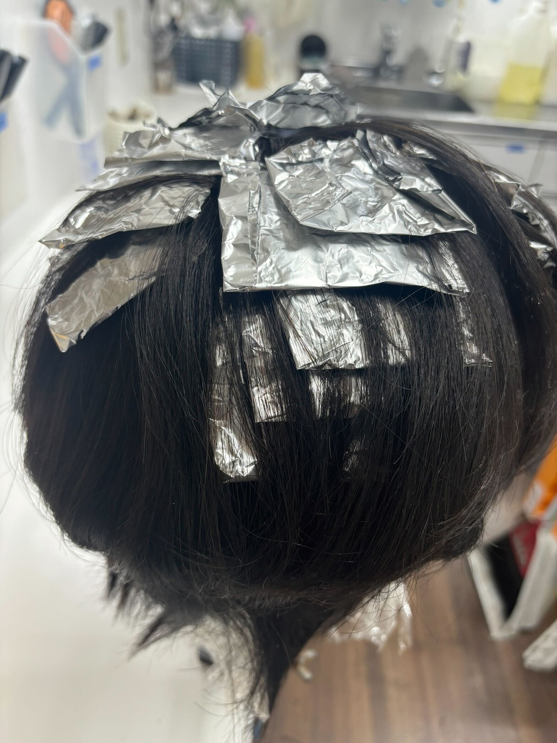 私は出戻り理容師なので、これが人生で4回目くらいのメッシュ作業。。(滅多にやる事ないので、出戻りで転職検討中の方、不安にならなくて大丈夫です!!)