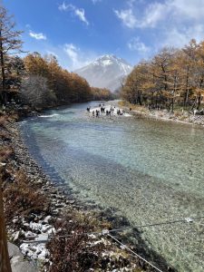 紅葉と雪が同時に見えるのは珍しいそうです!河童橋の反対側にある焼岳も綺麗でした!