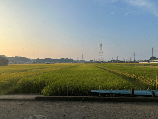 近所の田んぼの様子ですだんだんと稲穂が色づきはじめました。