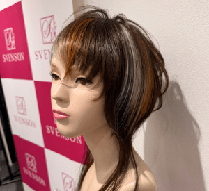 ジュエリーカラーはスヴェンソン独自のサービスで、縦30cm×横15cmの毛束をカラーを入れたい位置にあわせて、ウィッグのキャップ部分に縫いつけるため簡単に装着でき、地毛や頭皮を傷めずに美しい髪色を実現できる点が魅力となっています。